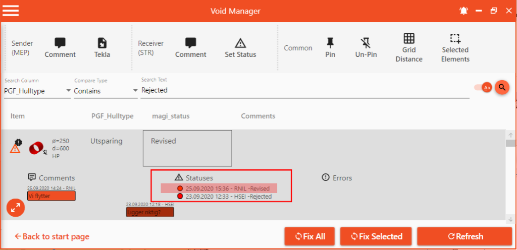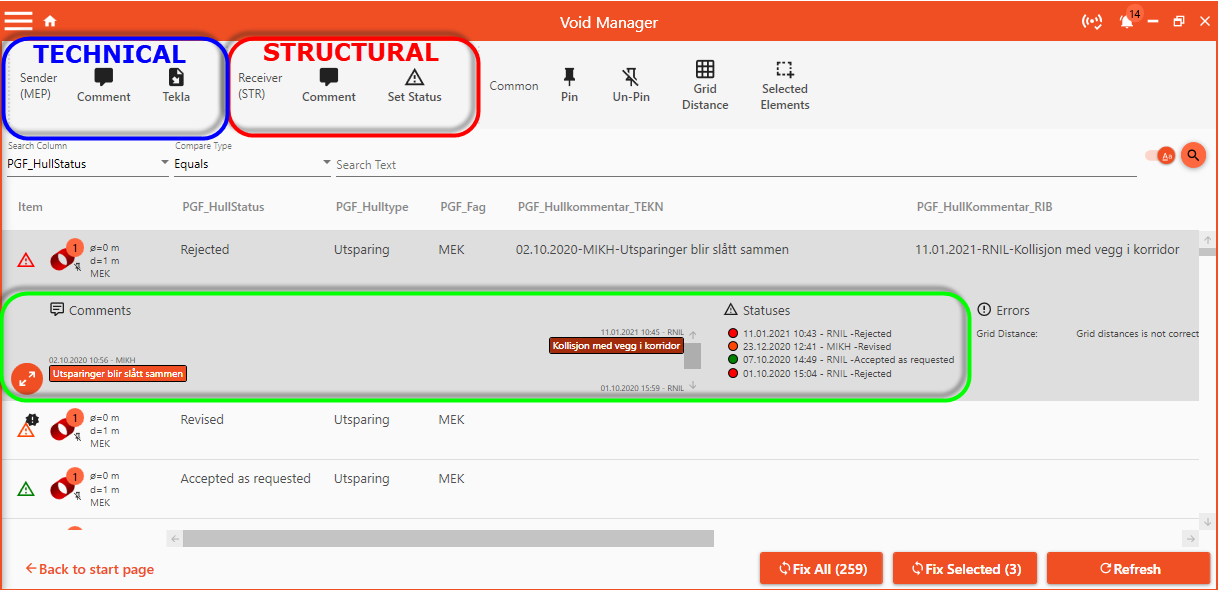 | KommentarTEKN | CommentTECHN | Comments from void sender/responsible. Typically the technical disciplines. | multiline text |