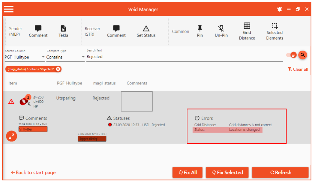 If a void is moved and/or changes in size, Void Manager will mark the void object with an error: