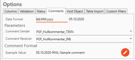 Comments Choose format for date stamp. Set parameters for sender and receiver comments respectively. ![]() |