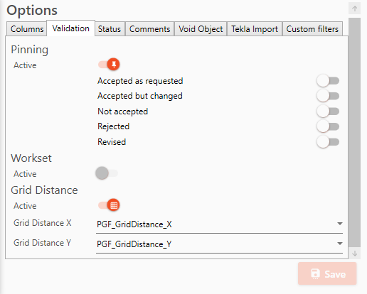 Validation Grid Distance: Select parameters for grid distances. ![]()